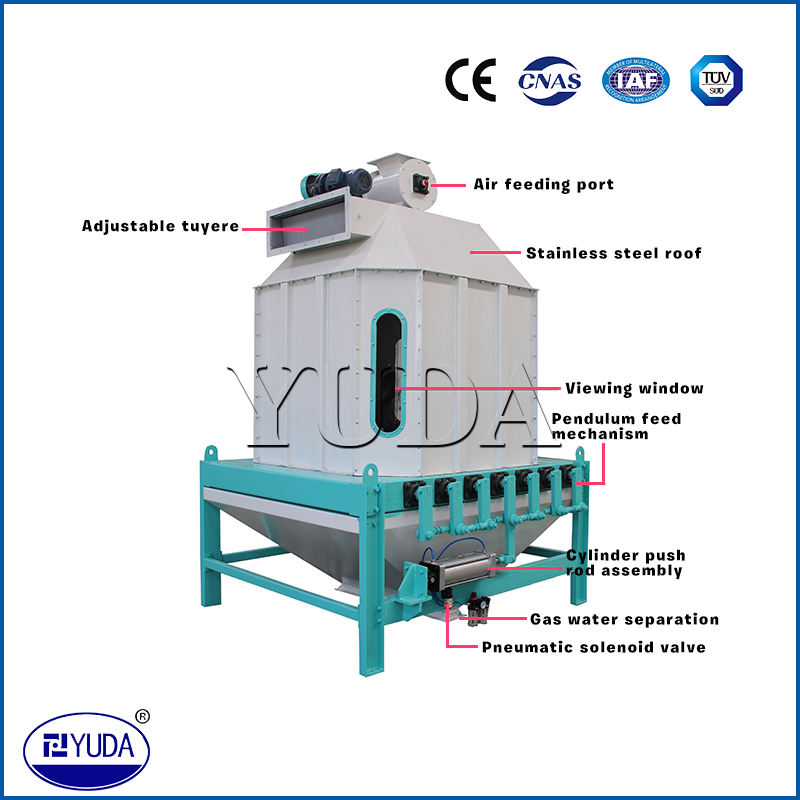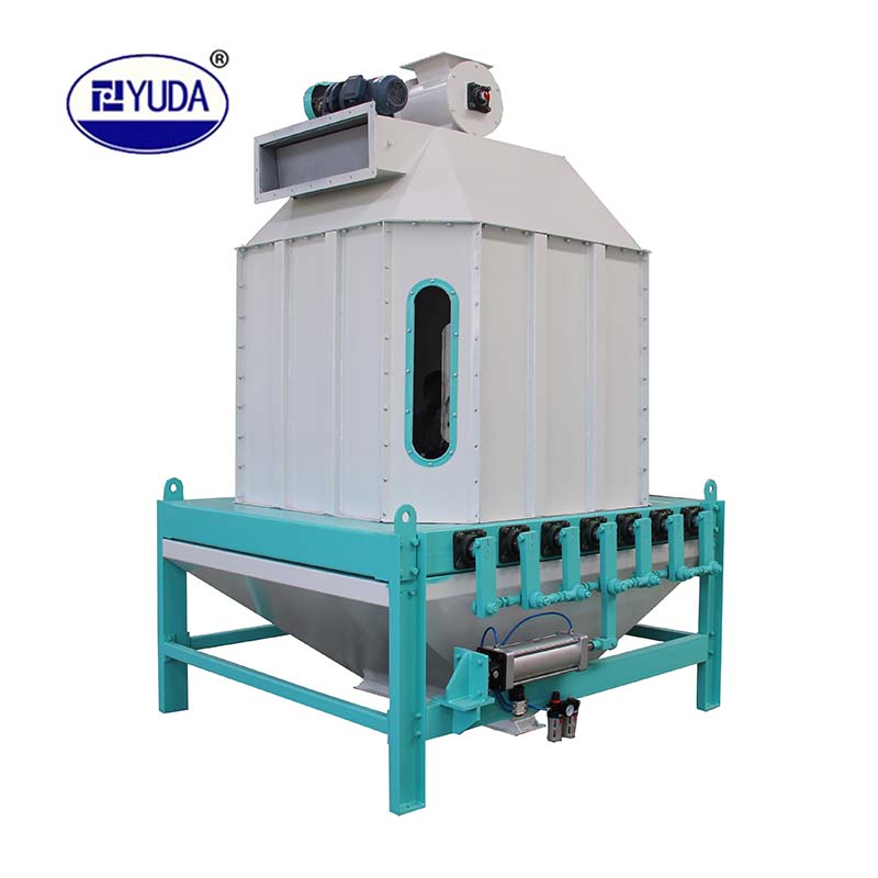 膨脹料的冷卻是膨脹工段中不可缺少的工序,擺式逆流冷卻器能將從膨脹器出來溫度達(dá)70°C~90℃的膨脹料冷卻到略高于室溫3℃~6°C,并能降低水份≥3%,這樣便于膨脹料的運(yùn)輸、儲藏和保管,同時(shí)也適用于膨化工段和制粒工段中膨化料和顆粒料的冷卻。擺式逆流冷卻器型號不同,其產(chǎn)量亦不同;它可適應(yīng)各種規(guī)模飼料廠使用。