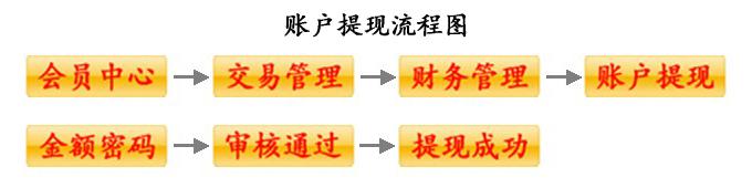 (1)賬戶提現(xiàn)首先需要設(shè)置“提現(xiàn)銀行”和“交易密碼”,設(shè)置完成后按以下流程圖進行提現(xiàn)。
