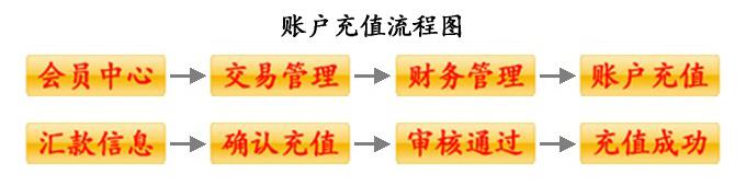 (1)首先請匯款至中國酒志網(wǎng)指定官方賬戶,再通過網(wǎng)站會員中心按以下流程圖進行賬戶充值。