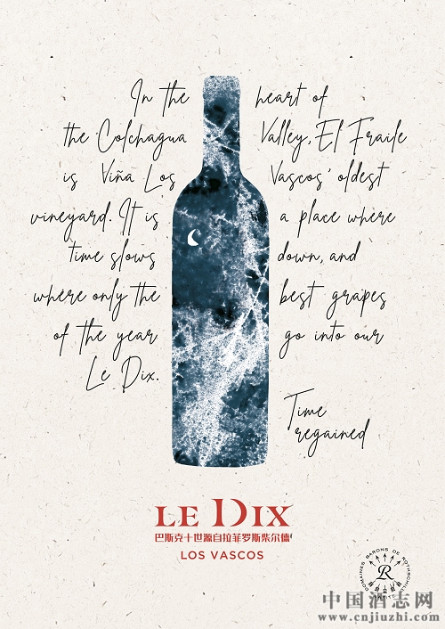 該酒款是酒莊為紀(jì)念團(tuán)隊(duì)在智利風(fēng)土上開(kāi)墾耕耘了十年而創(chuàng)釀的葡萄酒。2018年份的「巴斯克十世」酒標(biāo)進(jìn)行了煥新,以“復(fù)得的時(shí)光”作為酒款概念,凸顯了該酒款與時(shí)間的關(guān)系,每一瓶「巴斯克十世」都保留了美好的時(shí)光,都是所屬年份精華的集合體。新酒標(biāo)中包含了午夜星月、藍(lán)色蒼穹、飄逸云朵等元素,畫(huà)面中描繪了葡萄藤與大地和天空的故事,葡萄藤如悠悠歲月在這片土地里扎根,時(shí)間也仿佛隨之慢了下來(lái),代表著自然流轉(zhuǎn)、時(shí)間更迭下的生命循環(huán)。酒標(biāo)元素也象征著這片風(fēng)土上的晝夜更替帶來(lái)的明顯溫差,其非常適宜釀酒葡萄生長(zhǎng),也帶給了美酒繁復(fù)的香氣和怡人的清爽度。