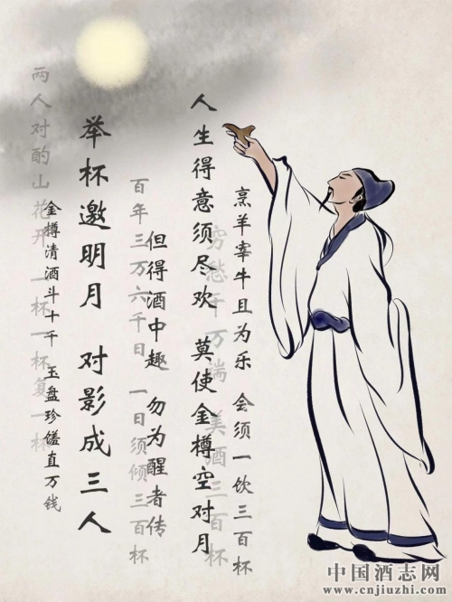 月亮和酒,是中國傳統(tǒng)文化中難以分開的意象,唐代大詩人李白就曾寫下過“舉杯邀明月,對影成三人”的千古名句。