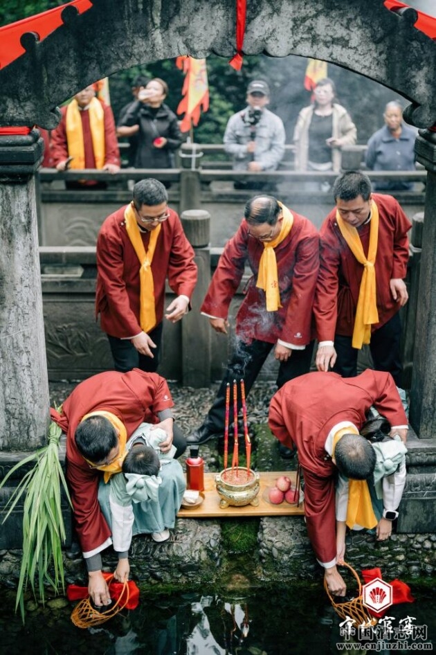 10月11日上午,隨著《九月九釀新酒》童謠的響起,貴州酒中酒集團(tuán)宋代官窖酒莊祭水大典緩緩拉開(kāi)帷幕。貴州酒中酒集團(tuán)董事長(zhǎng)曹本強(qiáng)焚香秉燭祭祀酒神后,在大師的引領(lǐng)下,來(lái)到酒中酒釀造水源地——金龜靈泉。酒師祭拜后,童男童女與酒師從泉眼中,取起了甲辰重陽(yáng)酒中酒集團(tuán)釀造醬香美酒的第一壇水。
