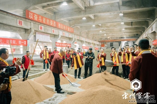 隨后,集團(tuán)董事長(zhǎng)曹本強(qiáng)一行人浩浩蕩蕩地前往宋代官窖酒莊制酒車間,舉行了盛大的下沙投產(chǎn)儀式。下沙是白酒釀造的關(guān)鍵環(huán)節(jié),標(biāo)志著新一年度釀酒周期的正式開(kāi)始。在車間內(nèi),酒工們熟練地潤(rùn)糧、下沙,這為釀造出高品質(zhì)的醬香酒奠定了堅(jiān)實(shí)的基礎(chǔ)。