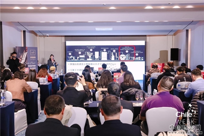 12月,一年一度的智利周在北京拉開帷幕。作為本屆智利周北京站的重頭戲,12月2日上午,主辦方ProChile和智利皮斯科生產(chǎn)商協(xié)會(huì)精心組織了一場智利國寶美酒——皮斯科大師班,并邀請到了知名調(diào)酒師、行業(yè)專業(yè)導(dǎo)師及賽事評委李冬燕女士為大家主講,本次參與活動(dòng)有四家智利皮斯科酒莊,分別為PISQUERA,CAPEL,WAQAR和SLAD,有40名業(yè)內(nèi)人士受邀參加了本場大師班。
